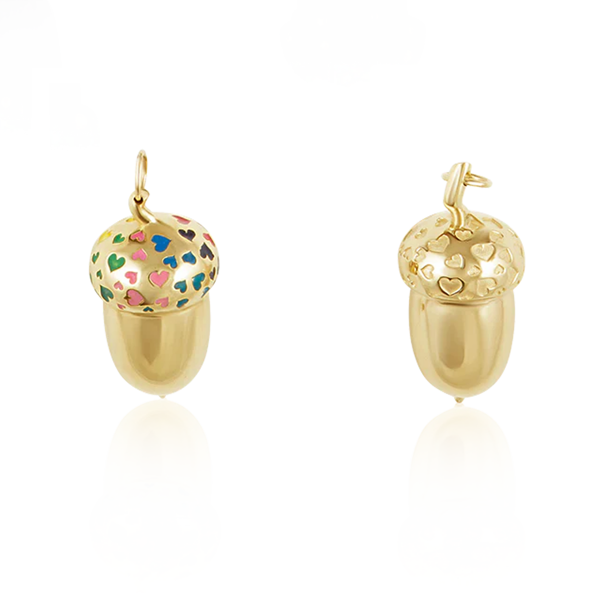 14k gold acorn pendant with or without enamel hearts.