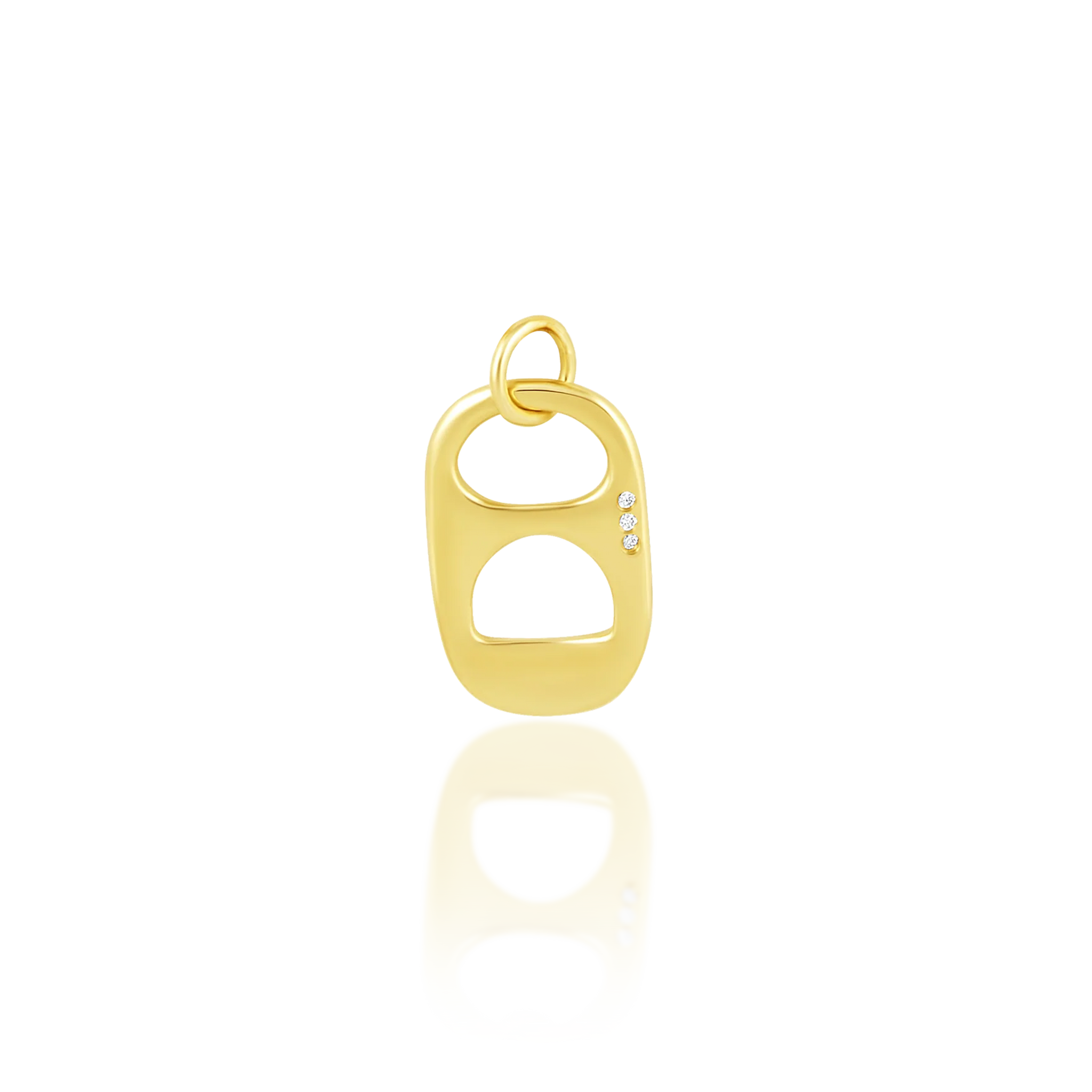 14k yellow gold with three 1.9mm VS+ man-made diamonds. These pop tops measure at 15.1mm x 24.6mm.